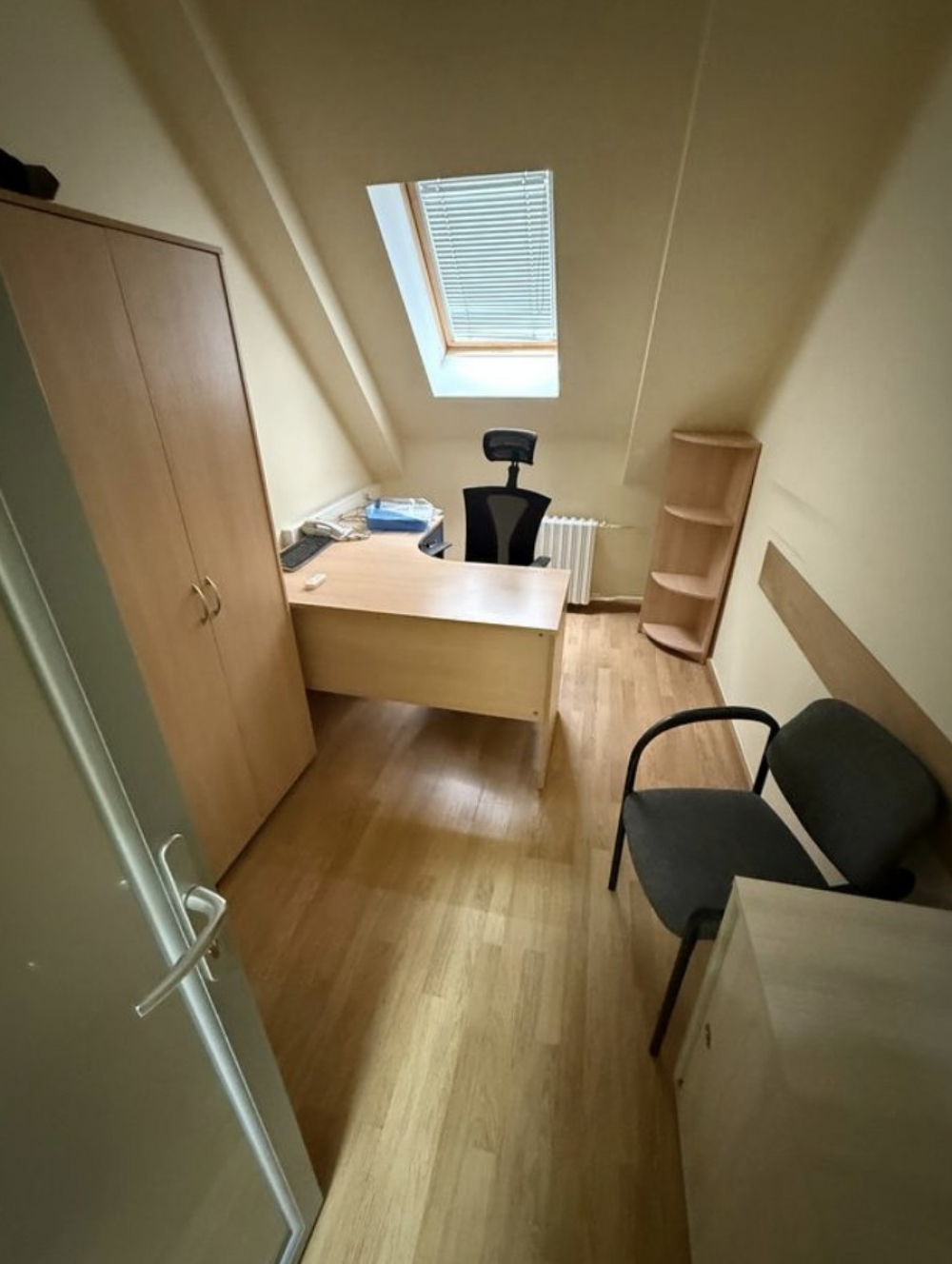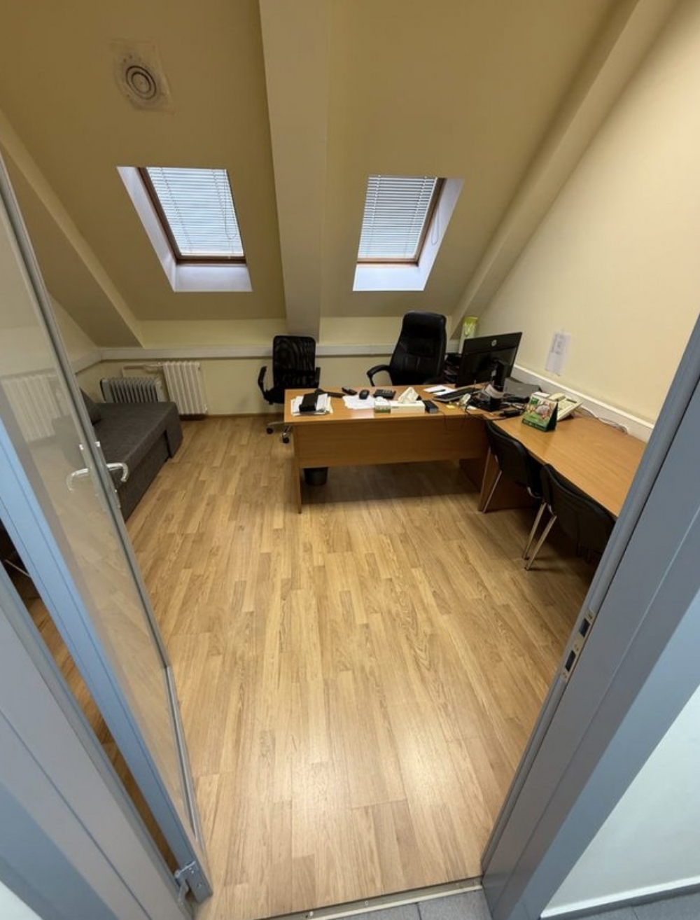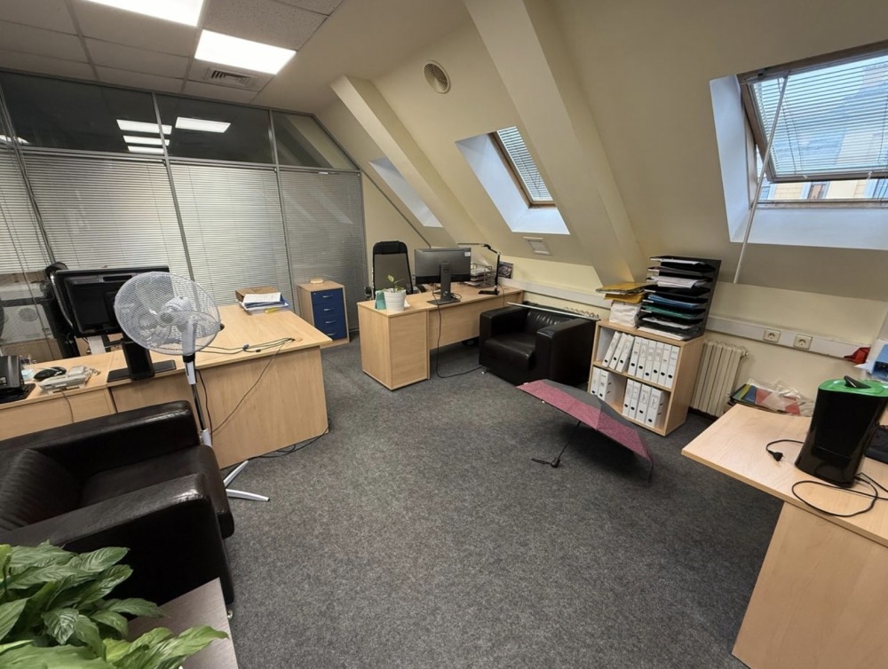 Помещение расположено на третьем (мансардном) этаже, стандартный офисный ремонт, кабинетная планировка, есть своя кухня и с/у. Установлена приточно-вытяжная вентиляция, кондиционирование.