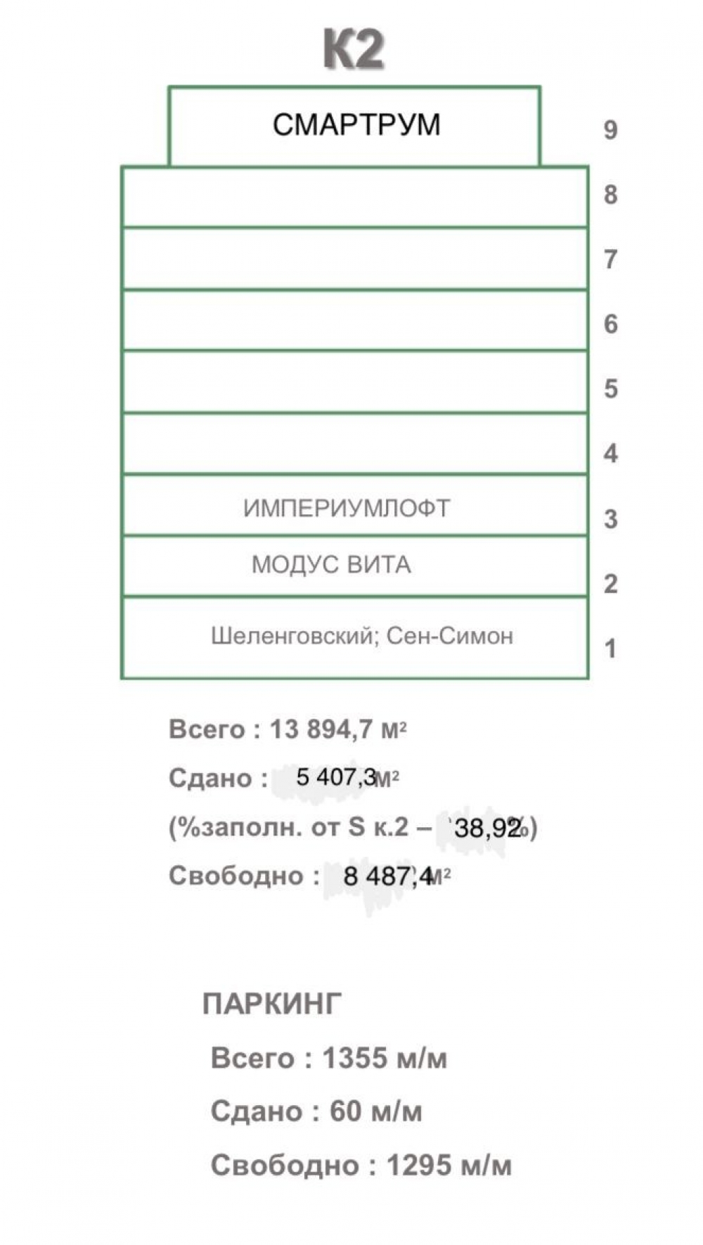 1295 Подземных,На территории Бизнес центра есть парковки, крытый паркинг 1295,1/33 коэффициент парковочных мест. для гостей 119 м/м