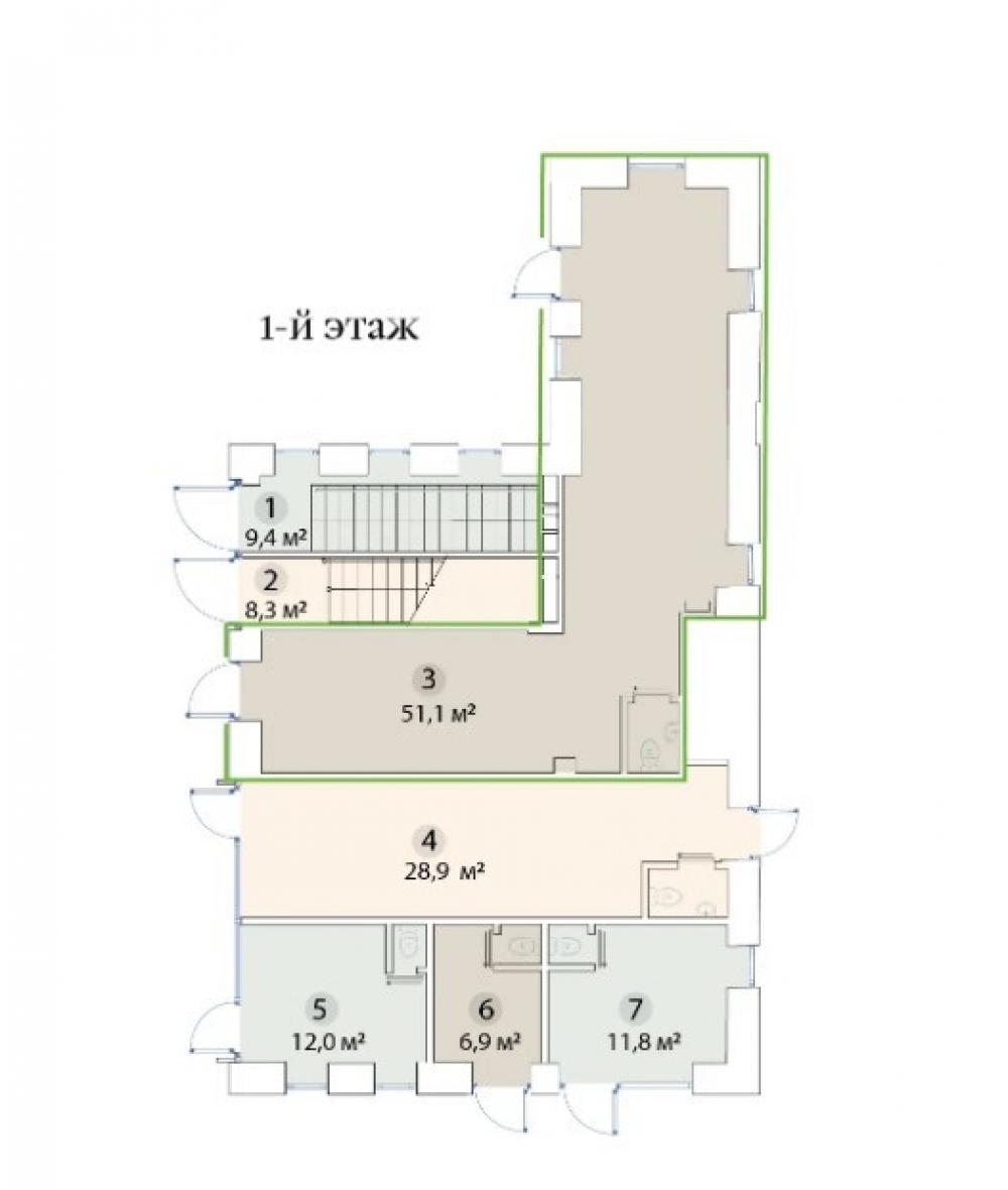 Предлагается помещение в ОСЗ, общая площадь 51.1 м2. Вход отдельный. 1 этаж. Высота потолков - 1 этаж: до 3,40 м. Коммуникации центральные, выделенная электрическая мощность, предоставляется по запросу ГВС/ХВС, ИТП, Отопление ИТП , Вентиляция и кондиционирование централизованное.