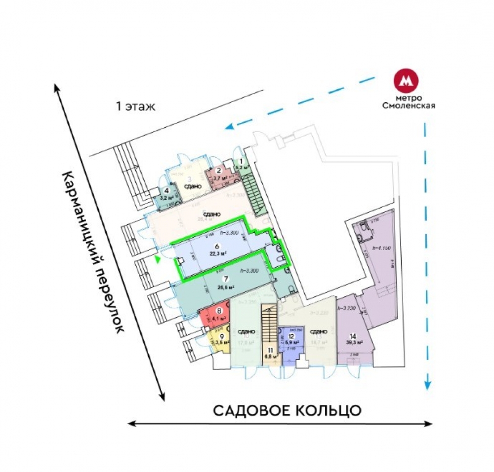 Предлагается в аренду торговое помещение на первой фасадной линии Садового кольца. В 20 метрах от выхода из станции метро «Смоленская». Сверхинтенсивный пешеходный и автомобильный трафик. Развитая торговая, деловая и административная инфраструктура. Помещение на 1 этаже общей площадью 22,30 м2, отдельный вход с фасада, большие витрины, свободная планировка, потолки 3,10 - 3,70 м.