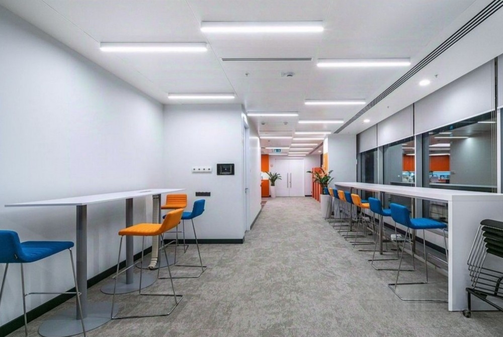 Офис расположен на втором этаже, стандартный офисный ремонт, смешанная планировка, есть своя кухня и с/у. Установлена приточно-вытяжная вентиляция, кондиционирование.