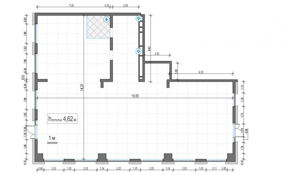 1 этаж 29-ти этажного жилого дома площадью 219 кв.м., в бетоне, первая линия, 2 отдельных входа (с улицы и со двора), правильная прямоугольная планировка. Большие витрины. Все инженерные коммуникации центральные. Центральная система кондиционирования и вентиляции. Выделенная мощность электроэнергии 65,5 кВт. Высота потолков 4,6м.