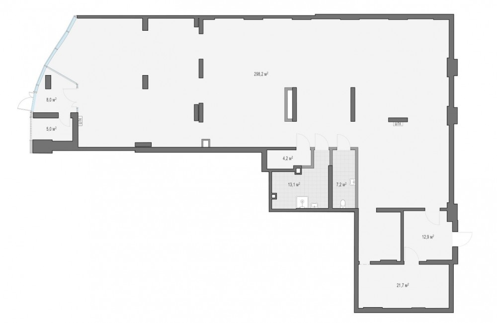 Помещение свободного назначения площадью 370,5 кв. м. Ретейл расположен в корпусе Line 5 на первой линии, имеет прямой вид на набережную. На фасаде предусмотрено место для размещения вывески. Панорамные витрины высотой более 5 метров.