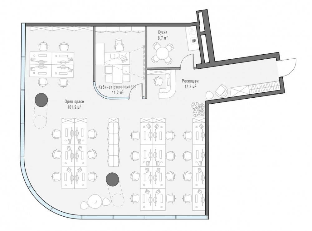 Видовой офис с панорамным остеклением на две стороны света: запад и юг, ориентирован на улицу Нижняя Масловка и городскую застройку. Свободная планировка и минимальное количество несущих конструкций позволяют максимально эффективно зонировать пространство. Панорамное остекление обеспечивает максимальное количество естественного освещения в дневное время и динамичный вид на город в вечернее. Наличие мокрой точки позволяет организовать в офисе кухню или дополнительные сан узлы.