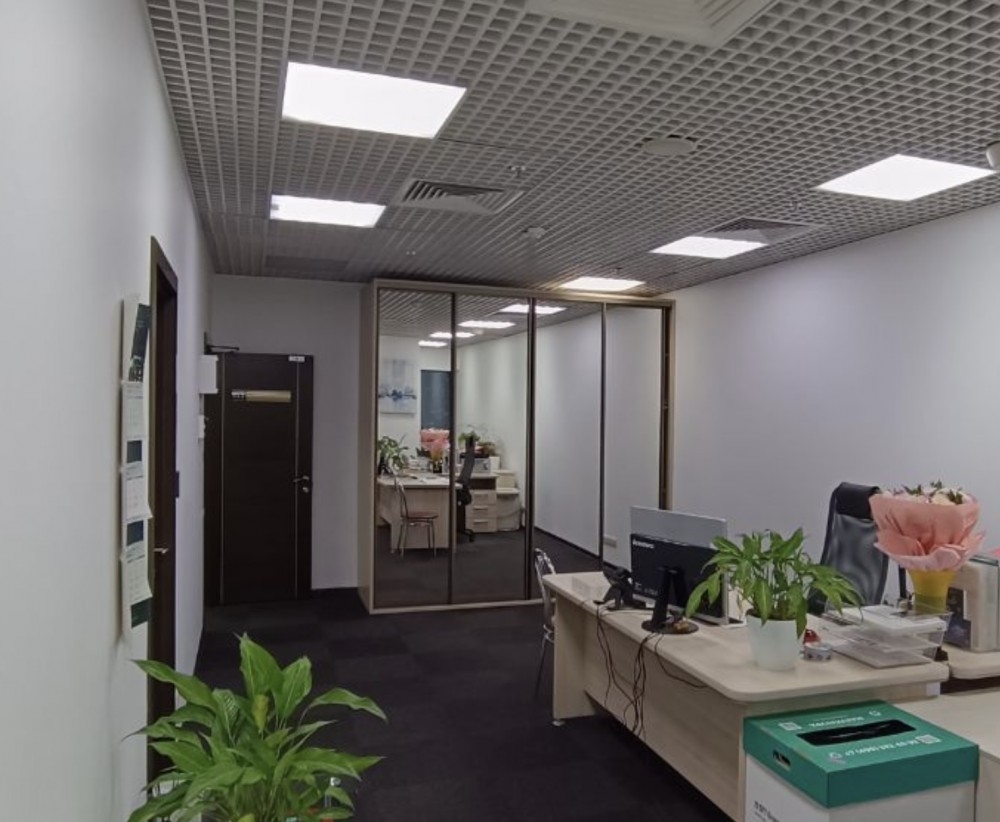 Помещение расположено на 9-v этаже, качественный офисный ремонт, кабинетная планировка. Установлена приточно-вытяжная вентиляция, кондиционирование. Офис сдается без мебели.