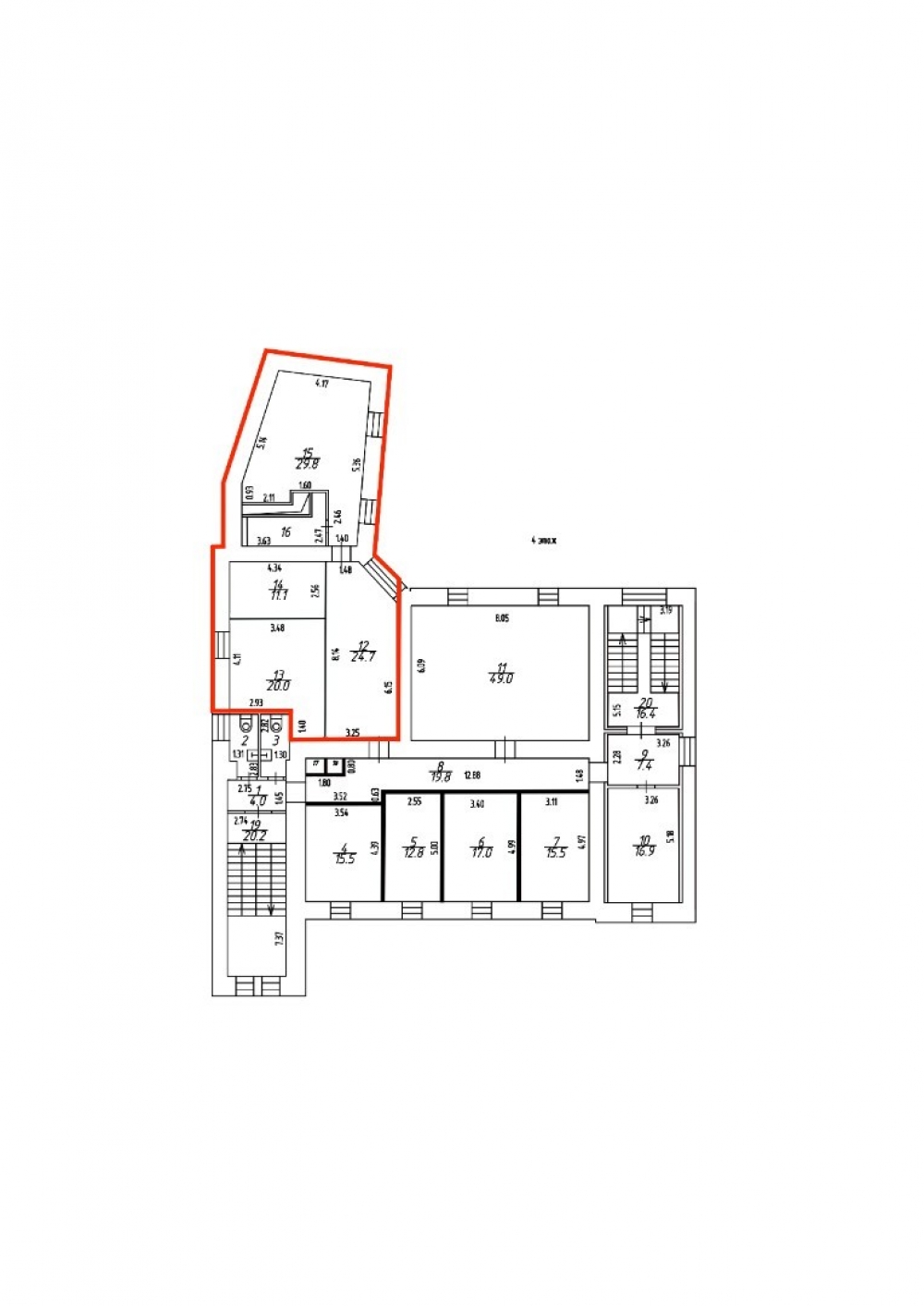 Предлагаем в аренду современный офисный блок с мебелью площадью 94,4 м², расположенный на 4 этаже бизнес-центра "Проспект Мира 62". Общая площадь включает три просторных кабинета, выполненных в стандартном офисном стиле со светлыми стенами, ламинатным полом, высокими потолками и большими окнами, а также небольшую кладовую. Санузел находится на этаже.