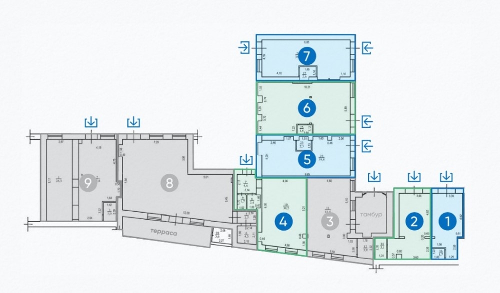 Вся торговая галерея находится внутри двора, проход через арку. В будущем - активный торгово-офисный кластер.