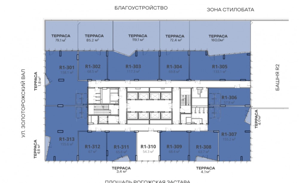 Предлагается в продажу офисный блок в строящемся Бизнес-центре "Римский", по адресу: Золоторожский Вал, 11а/1. Данный блок находится в R1 Башне, на 3 этаже общей площадью 239 м2. Новый бизнес-центр представляет собой комбинацию из трех пространственных элементов. Единый стилобат выступает подиумом для двух расположенных на нем башен-скульптур или «арт-объектов». Первая башня (18 этажей) – скульптура – расположена в глубине участка и замыкает ось «зеленой реки». Башню отличает активная пластика с элементами закругления, характерная индустриальной эстетике. Само здание во всю высоту покрыто металлическими ламелями белого цвета. Для второй башни (23 этажа) характерен более тонкий пластичный язык с уступчивым чередованием открытых и закрытых вертикальных ниш. Фасад выполнен из черных металлических ламелей во всю высоту здания, что создает эффект динамики в процессе восприятия.