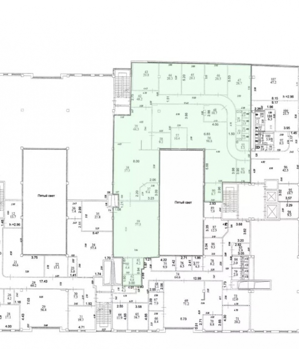 Офис расположен на пятом этаже, смешанная планировка, есть помещение для приема пищи и свои с/у. Выполнена стандартная офисная отделка. В здании приточно-вытяжная вентиляция и кондиционирование.