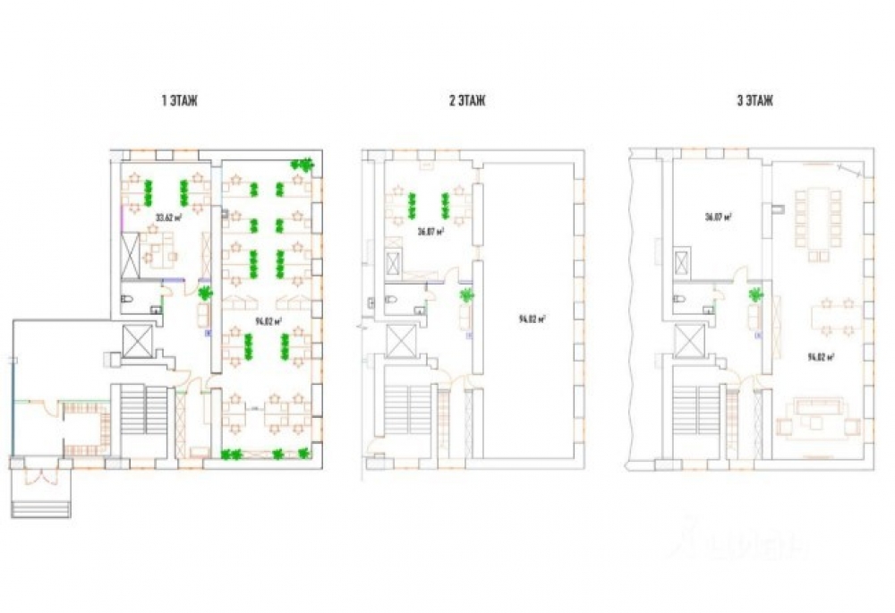 Просторное помещение. Офис располагается на 1–3 этажах здания и готов к немедленному въезду. Офис сдается с мебелью.