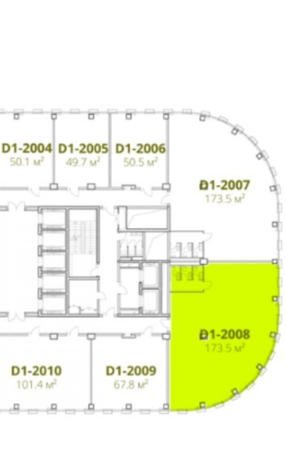 Планировки офисных этажей соответствуют требованиям функционального офиса: глубина помещений – 8-10 м, высота потолков – 3,65 м, шаг колонн – 8,4 х 8,4 м. Окна в пол обеспечат оптимальный уровень инсоляции и предусматривают возможность естественного проветривания. В бизнес-центре предусмотрен подземный и наземный многоуровневый