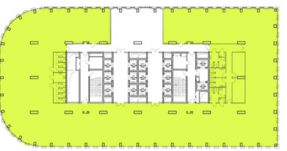 Планировки офисных этажей соответствуют требованиям функционального офиса: глубина помещений – 8-10 м, высота потолков – 3,65 м, шаг колонн – 8,4 х 8,4 м. Окна в пол обеспечат оптимальный уровень инсоляции и предусматривают возможность естественного проветривания. В бизнес-центре предусмотрен подземный и наземный многоуровневый