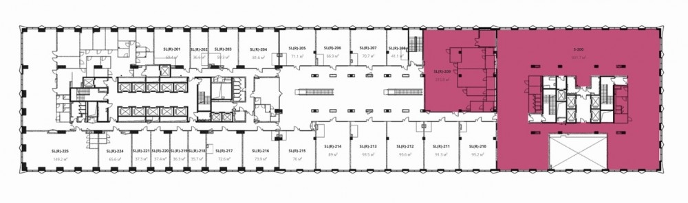 2 этаж 2х этажного стилобата соединяющего 2 офисные башни высотой 23 и 12 этажей, площадь помещения 315,8 кв.м., первая линия, витринное остекление, открытая планировка, потолки 4 м., электроэнергия 20 кВт (есть техническая возможность для увеличения.