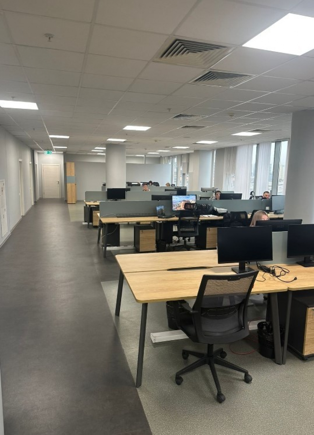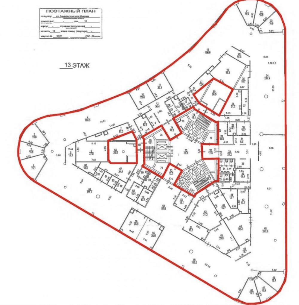 Офис занимает весь 13-ый этаж, стандартный офисный ремонт, смешанная планировка, есть свой с/у. Установлена приточно-вытяжная вентиляция, кондиционирование.