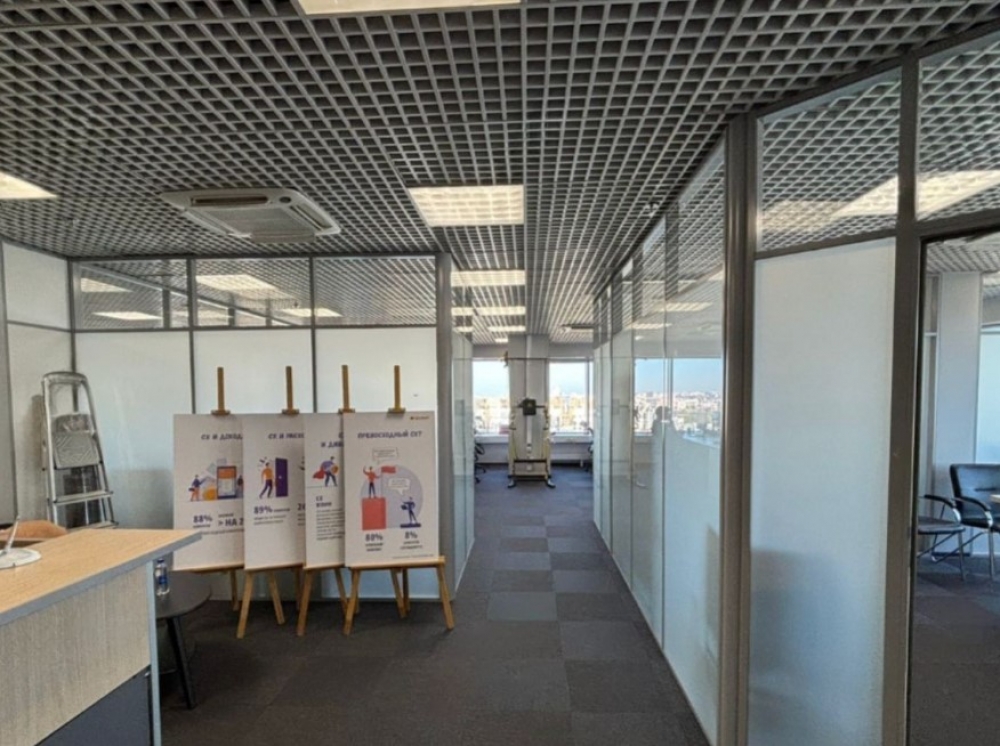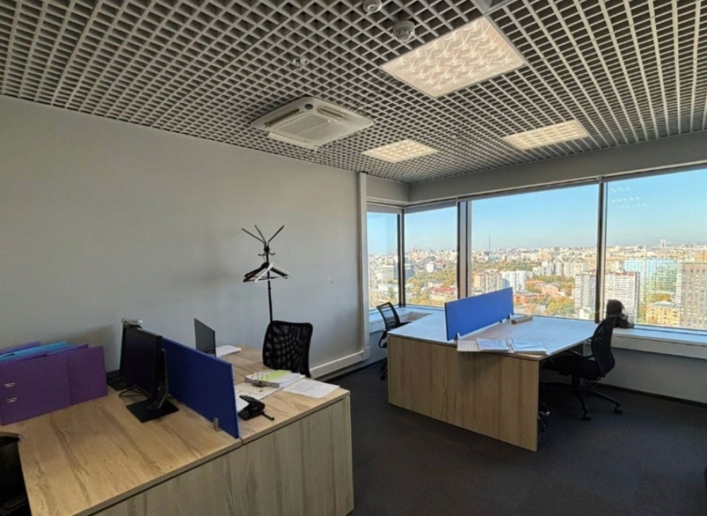 Площадь офиса 165м2, расположен на 22-м этаже, смешанная планировка, есть зона кухни, с/у рядом с блоком. Качественный офисный ремонт за выездом арендатора.