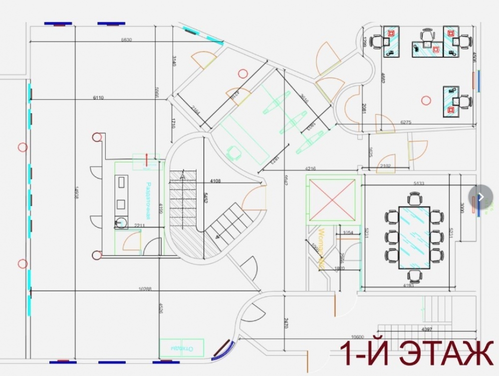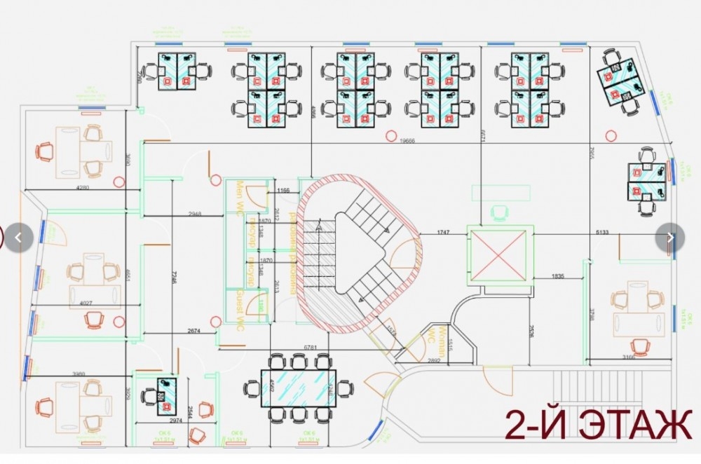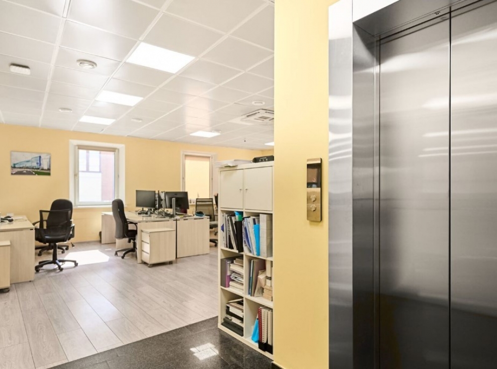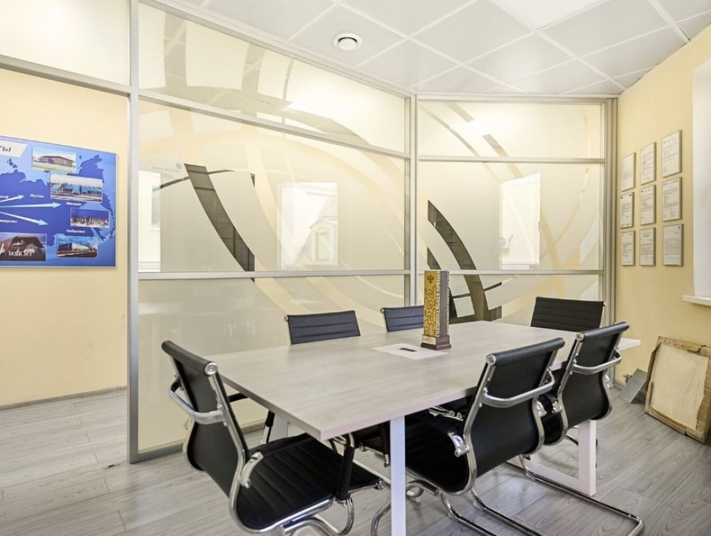 Общая площадь 1619,3м2, четыре этажа и подземная парковка. На четвертом этаже расположены кабинеты для руководства с собственным санузлом, на 2-м и 3-м этажах офисные зоны, на первом зона ресепшен и несколько кабинетов. Помещения с качественным ремонтом и высокими потолками.
