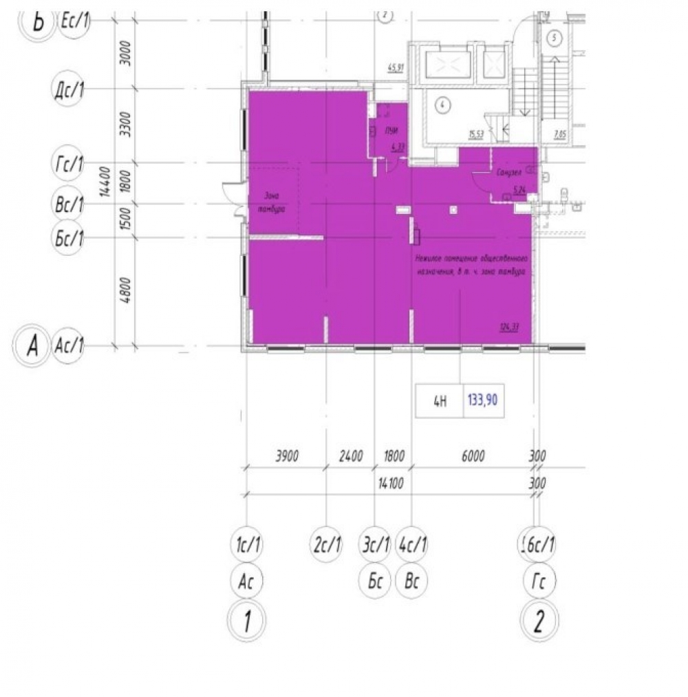 Угловое помещение правильной прямоугольной формы на 1 этаже .