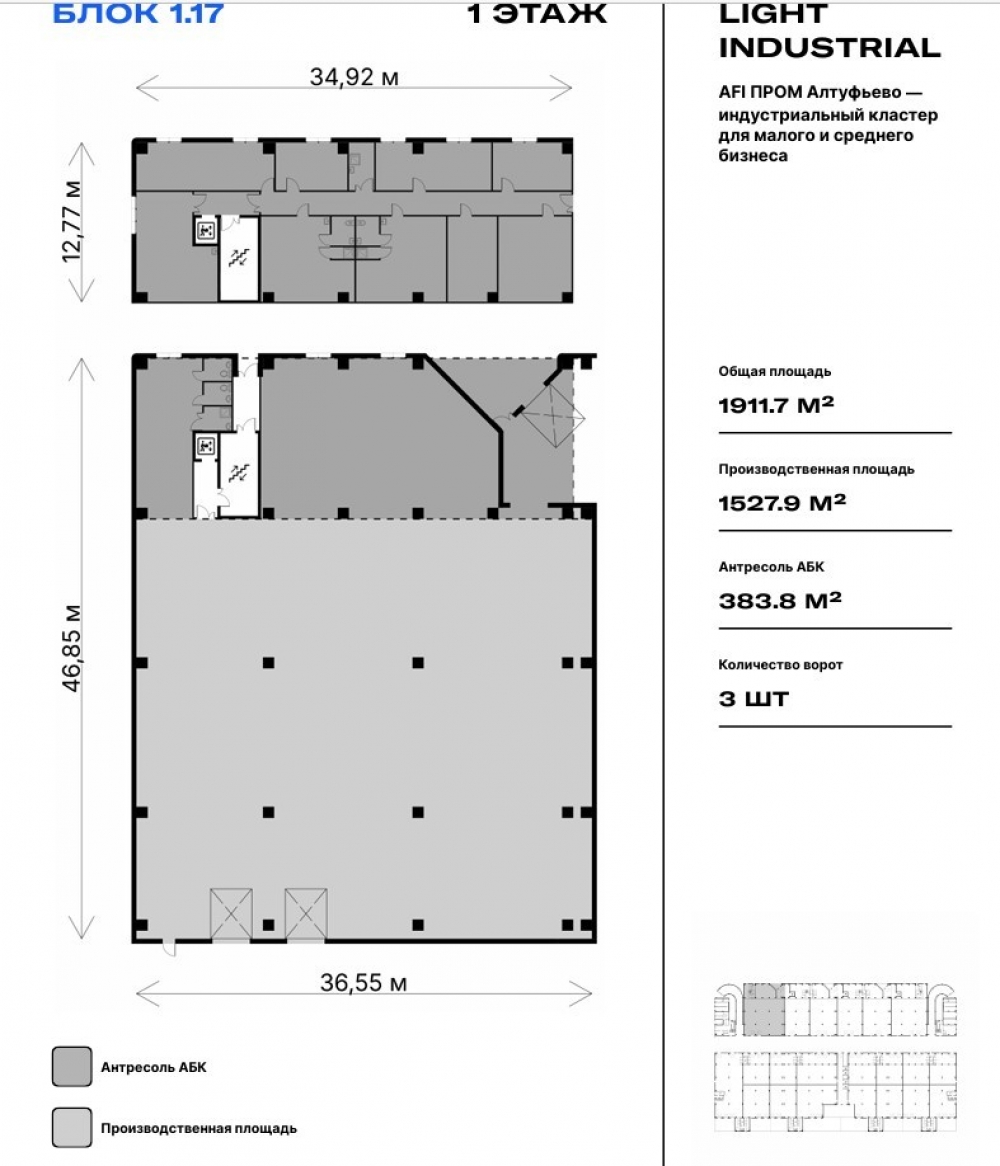 Аренда складского помещения на 1 этаже, площадью 1911.7 м2 в многоэтажном производственном здании формата "Лайт Индастриал" в AFI ПРОМ Алтуфьево