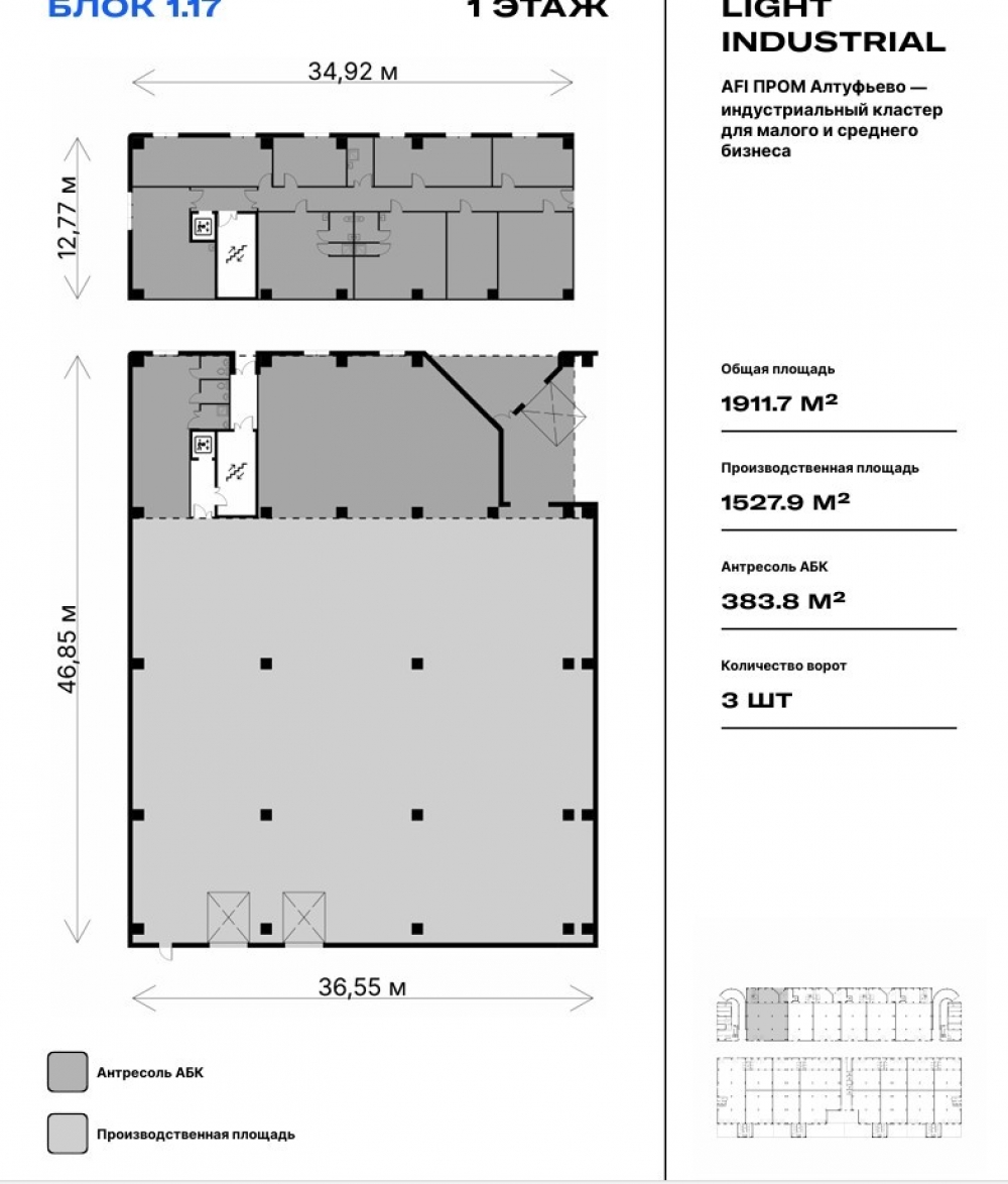 Продажа складского помещения на 1 этаже, площадью 1911.7 м2 в многоэтажном производственном здании формата "Лайт Индастриал" в AFI ПРОМ Алтуфьево