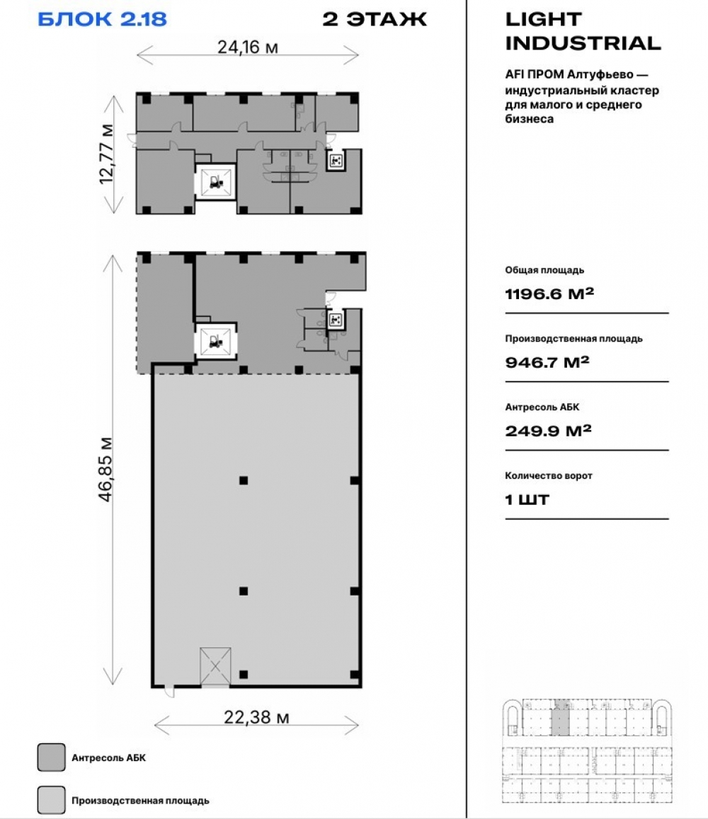 Продажа складского помещения на 2 этаже, площадью 1196.6 м2 в многоэтажном производственном здании формата "Лайт Индастриал" в AFI ПРОМ Алтуфьево