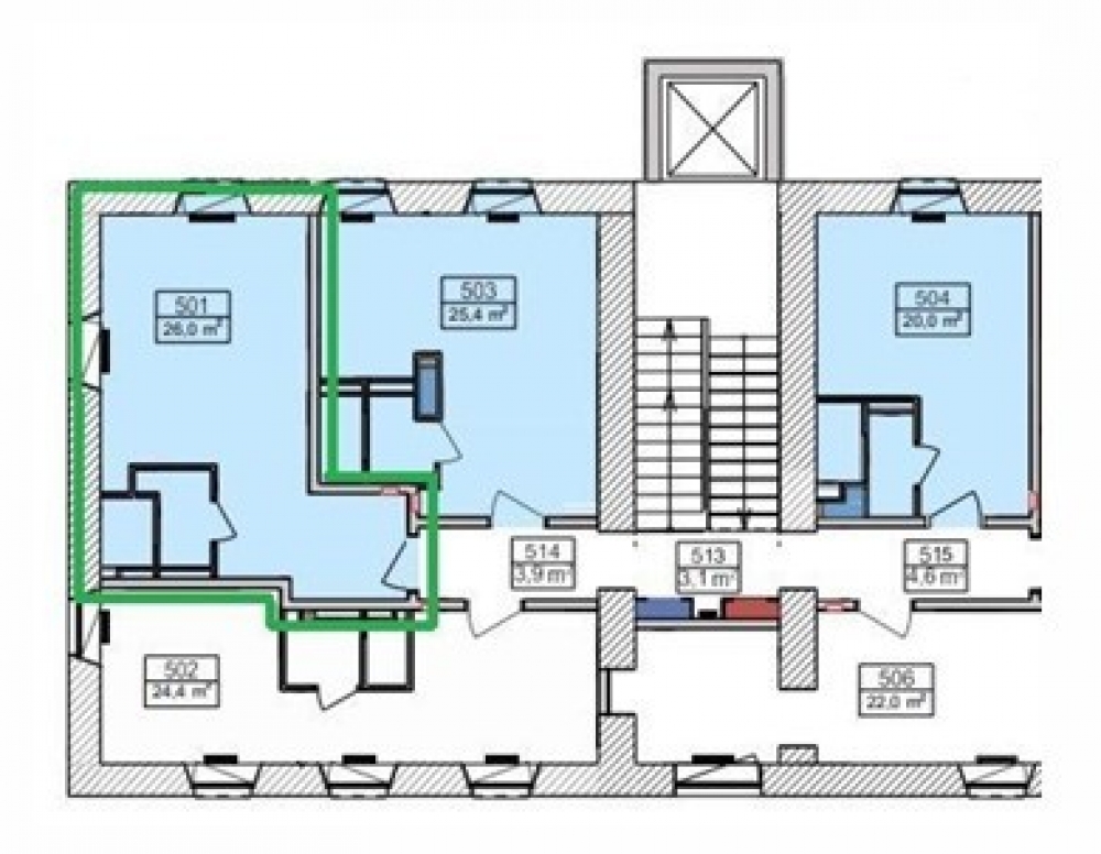 Пятый этаж административного здания, вторая линия домов, тихий закрытый двор. Исторический центр, стильная отделка. Каждый блок оборудован санузлом.