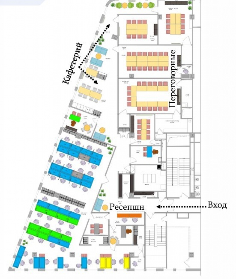 Вспомогательные помещения (кладовые, гардеробная, phone/mail room, зона ресепшн, с/у с душевой)