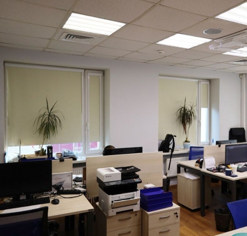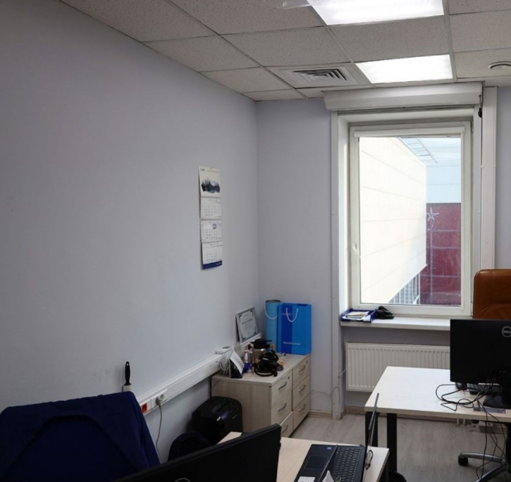 Офис расположен на 4-х этаже, кабинетная планировка, своя кухня и с/у. Выполнена стандартная офисная отделка. В здании естественная вентиляция, сплит-системы кондиционирования.
