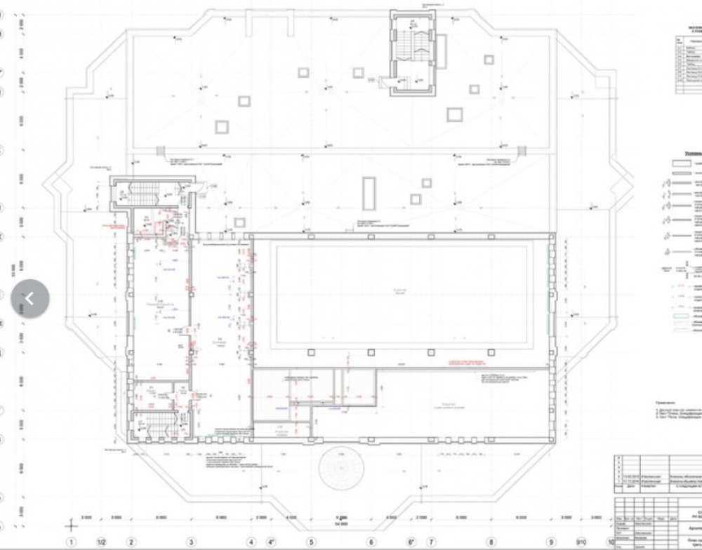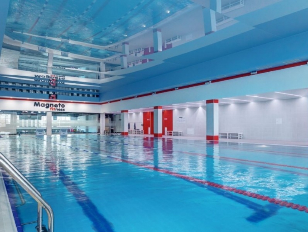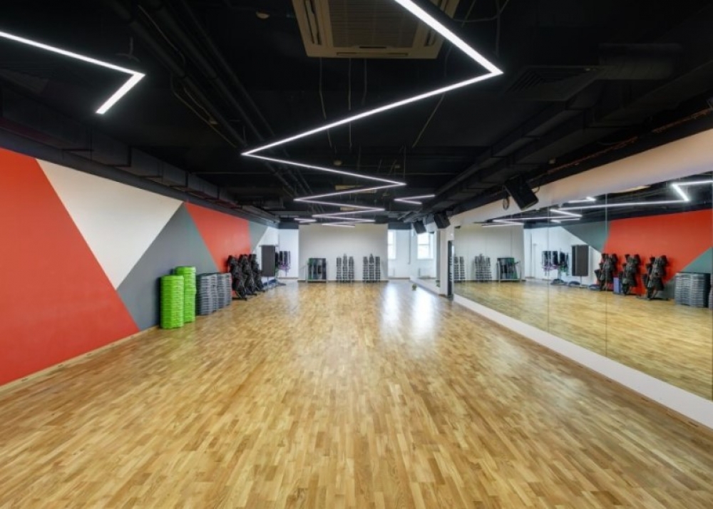 Оборудован бассейн с хаммамом и сауной, раздевалки и 3 зала групповых программ.