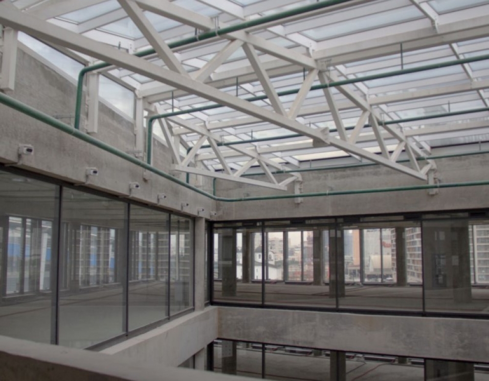 Общая площадь здания 9836м2: пять наземных этажей и подземный этаж с парковкой и амфитеатром на 100 человек.