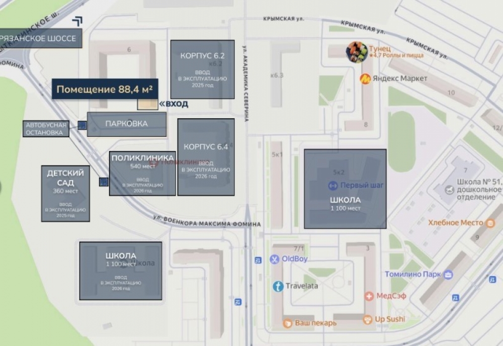 Аренда торгового помещения ЖК "Томилино Парк"