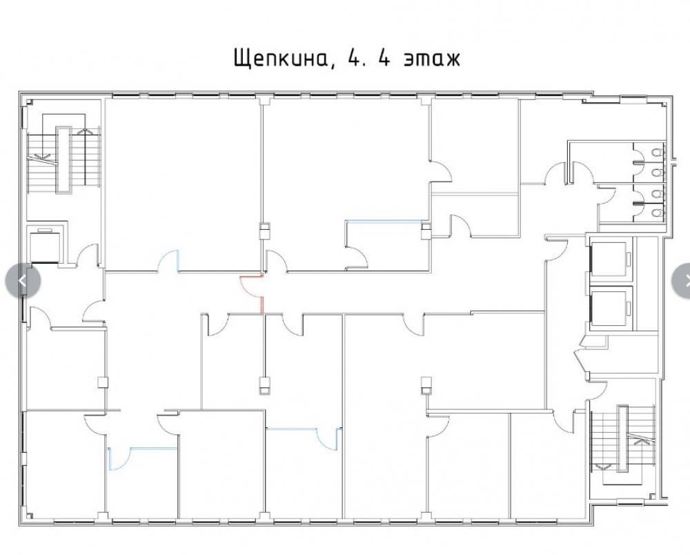 Офис расположен на 4-м этаже, общая площадь 499м2 (полезная 450м2), кабинетная планировка, потолки 3м. Установлены системы вентиляции и кондиционирования.