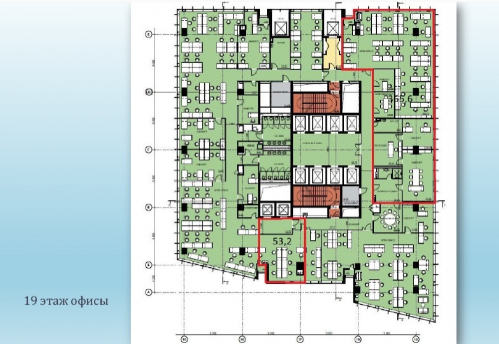 аренднопригодная площадь 38 145 кв. м (торговые площади 11 708 кв. м, офисы 26 437кв.м.)
