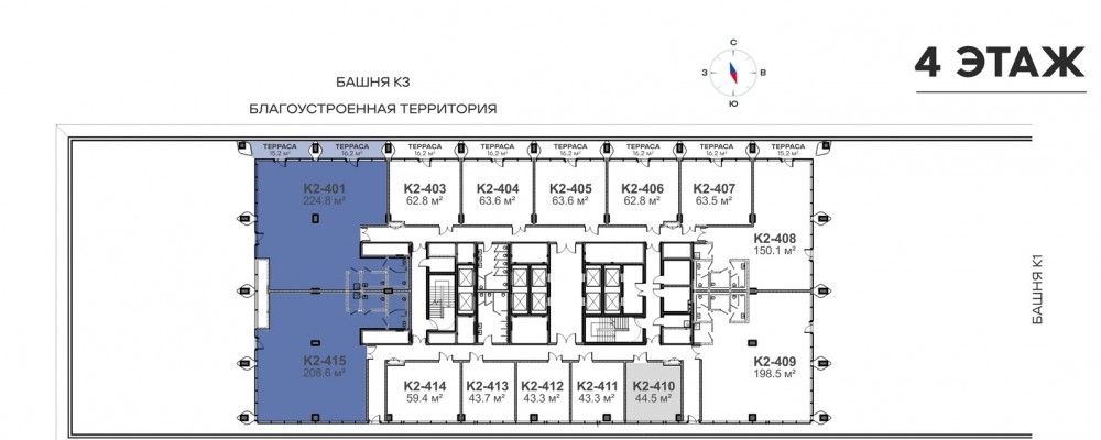 Продажа офисного помещения 208.6 м2 на 4 этаже в STONE Калужская. Башня К3.