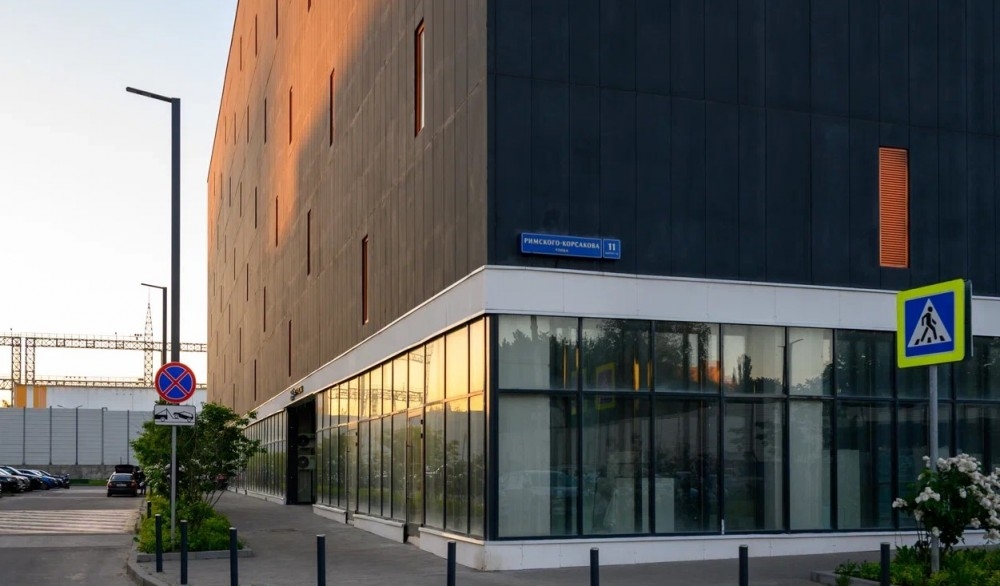 Вокруг помещения дарксторы крупных федеральных компаний и большая бесплатная парковка.