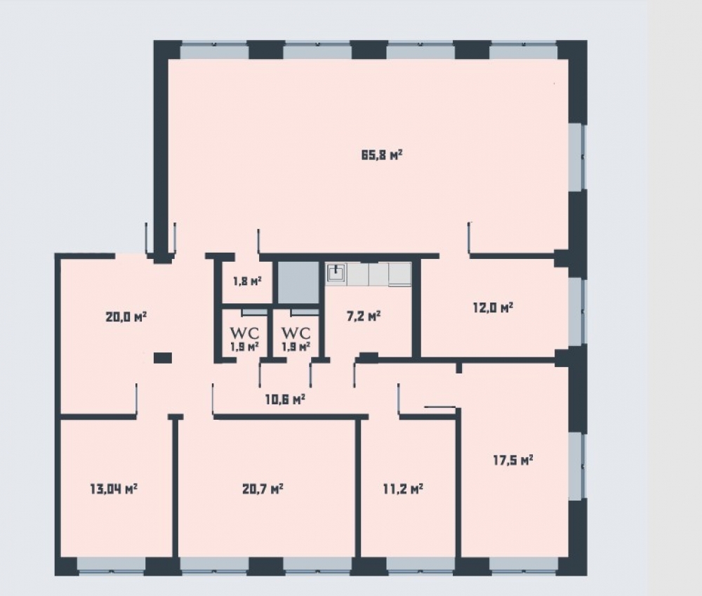 В каждом блоке: кухня, санузел, кабинет руководителя