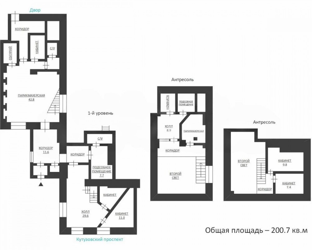Общая площадь: 200,7 м² (140 м² по полу + узаконенные антресоли)