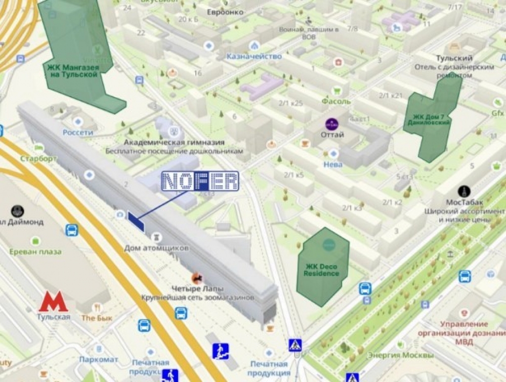 Продажа арендного бизнеса Торговая площадь с Официальным дилером “Nofer” на 1 этаже 16-ти этажного дома по адресу ул. Большая Тульская д. 2 , всего 2 минуты до метро Тульская! Первый этаж. Плотный жилой массив. Более 12 000 жителей в радиусе 500 м. Рядом строится ЖК премиум-класса “Мангазея на Тульской”. В шаговой доступности находится остановка общественного транспорта. Сверхинтенсивный трафик.