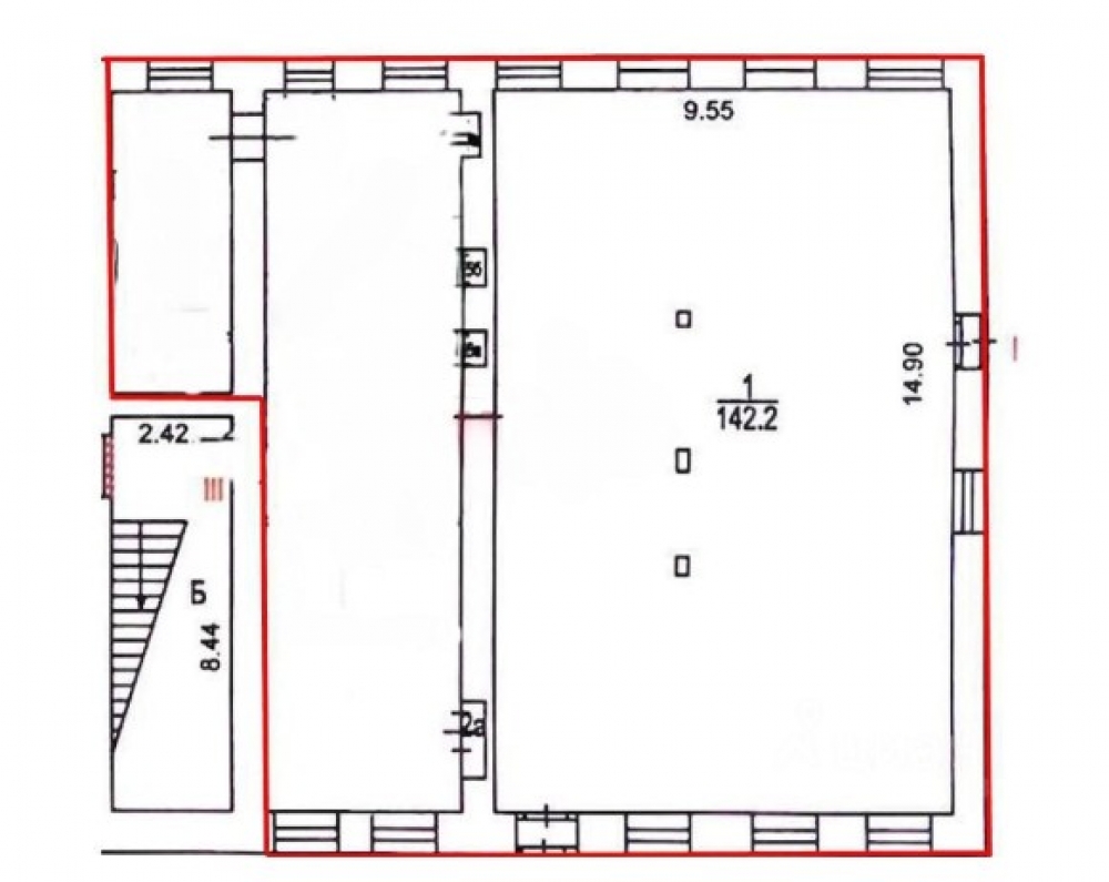 Первый этаж, вход со двора в арку. Зальная планировка. Здание - памятник. Сверху апартаменты.