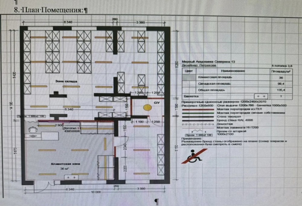 Площадь помещения: 135.4 м2