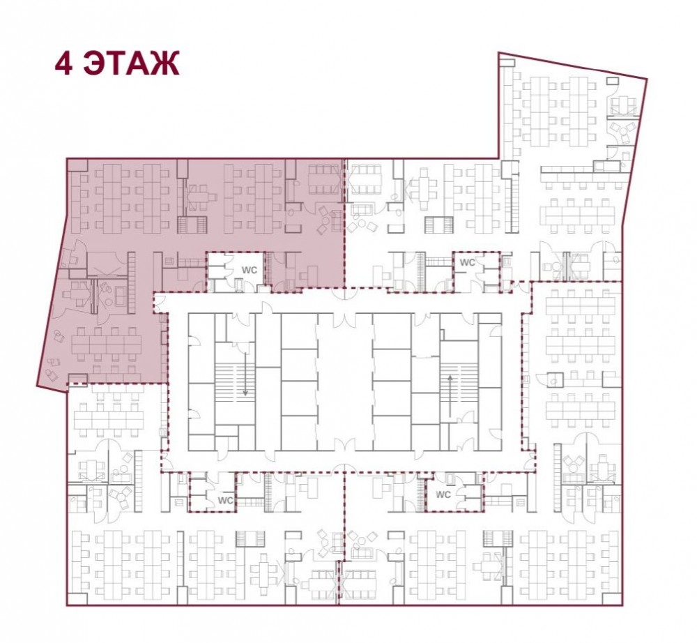 Площадь офиса 368м2, расположен на 4-м этаже, смешанная планировка, свой с/у и кухня. Качественный офисный ремонт. Полностью меблирован и оборудован на 52 рабочее место.