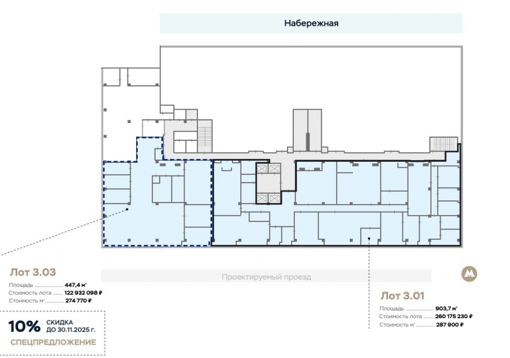 Комплекс офисных зданий класса B+ с развитой инфраструктурой, хорошей транспортной доступностью и живописными видами на набережную