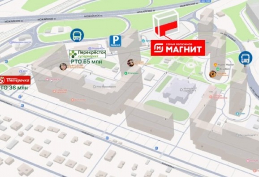 Продажа арендного бизнеса Торговая площадь с сетевым супермаркетом “Магнит” на первом этаже 16-ти этажного нового Апарт комплекса "Аметист” по адресу г. Одинцово, ул. Чистяковой, д. 8, стр. 2 , ЖК бизнес-класса на 405 апартаментов., более 7274 квартир в радиусе 500 м. В шаговой доступности находится МЦД Сколково,. 5 км от МКАД.