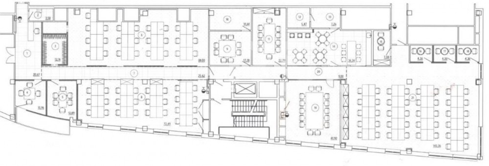 Площадь офиса 728м2, третий этаж, смешанная планировка, своя кухня и с/у. Качественный офисный ремонт за выездом арендатора. Установлена приторно-вытяжная система вентиляции и центральное кондиционирование.