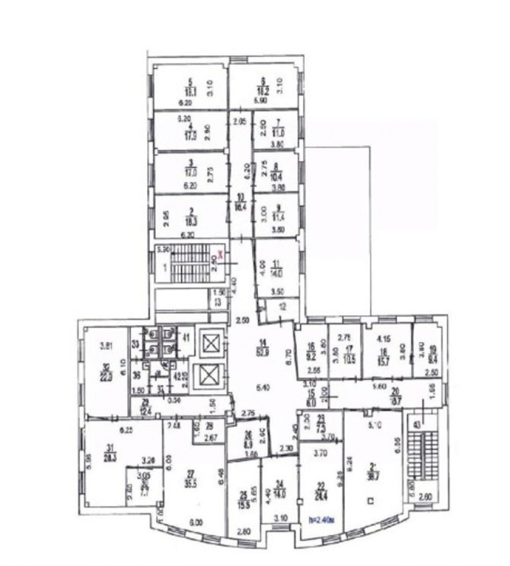 Офисный этаж целиком. Все кабинеты оборудованы слаботочными сетями для телефонии и интернета, а техническое