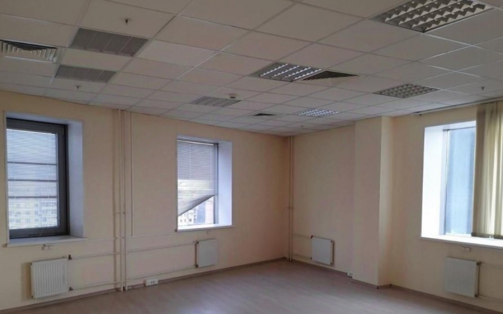 Офис занимает весь 13-ый этаж. Отделка за выездом арендатора: подвесные потолки, фальшпол, стены оклеены обоями, покрашены.