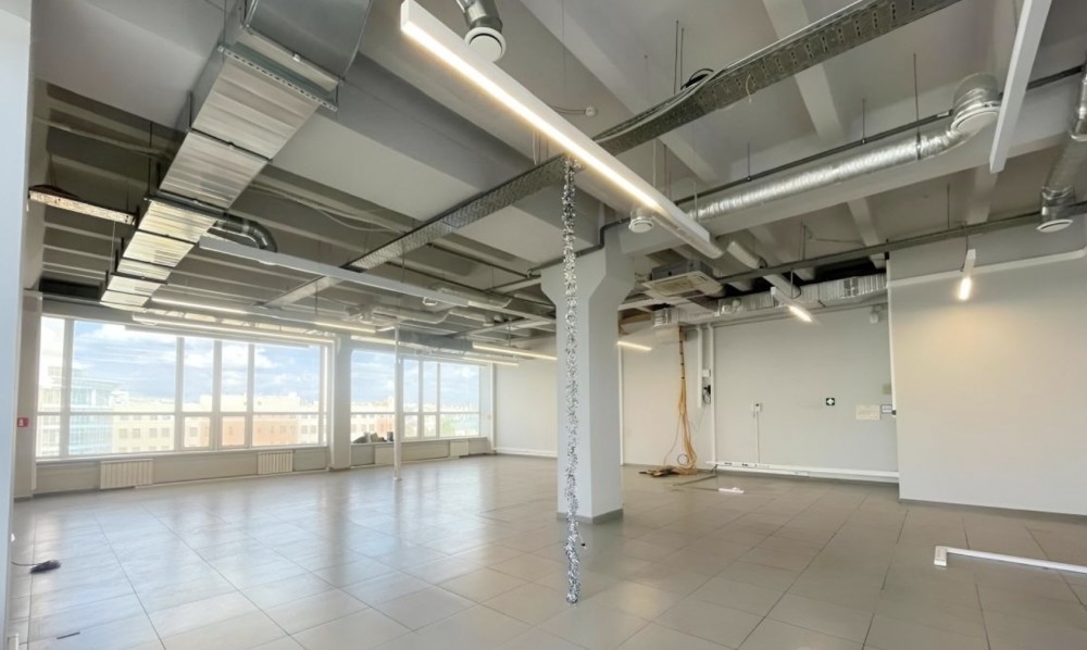 Офисный блок расположен на 7-м этаже, ссвободная планировка, стандартная офисная отделка. Установлена приточная вентиляция и кондиционирование. Потолки 3,2м.