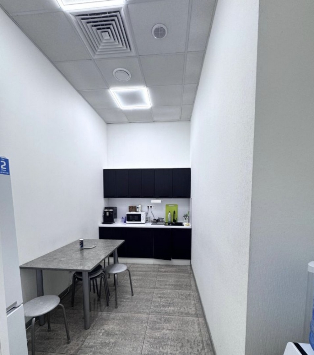 Офисный блок расположен на 6-м этаже, смешанная планировка, стандартная офисная отделка, кухня и свои с/у. Установлена приточная вентиляция и кондиционирование. Потолки 3,3м.