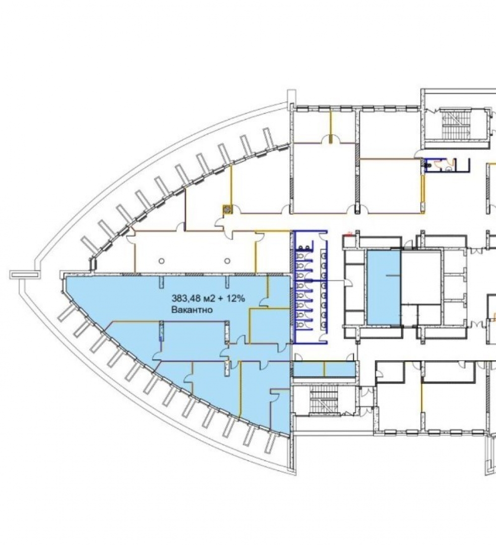Площадь блока 383,48м2+12% коридорный коэф.м2, стандартная отделка, смешанная планировка. Установлены системы приточно-вытяжная вентиляция и кондиционирования.