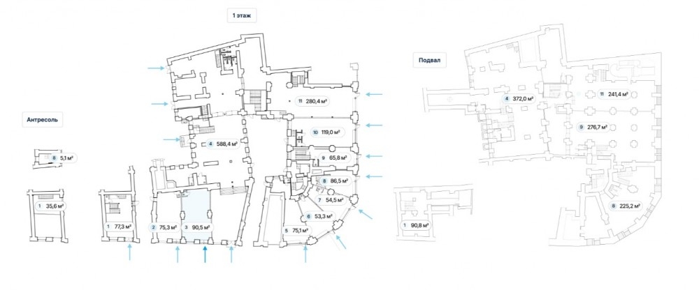 Отдельные входные группы с фасада с 1-ой линии, есть входы со двора.