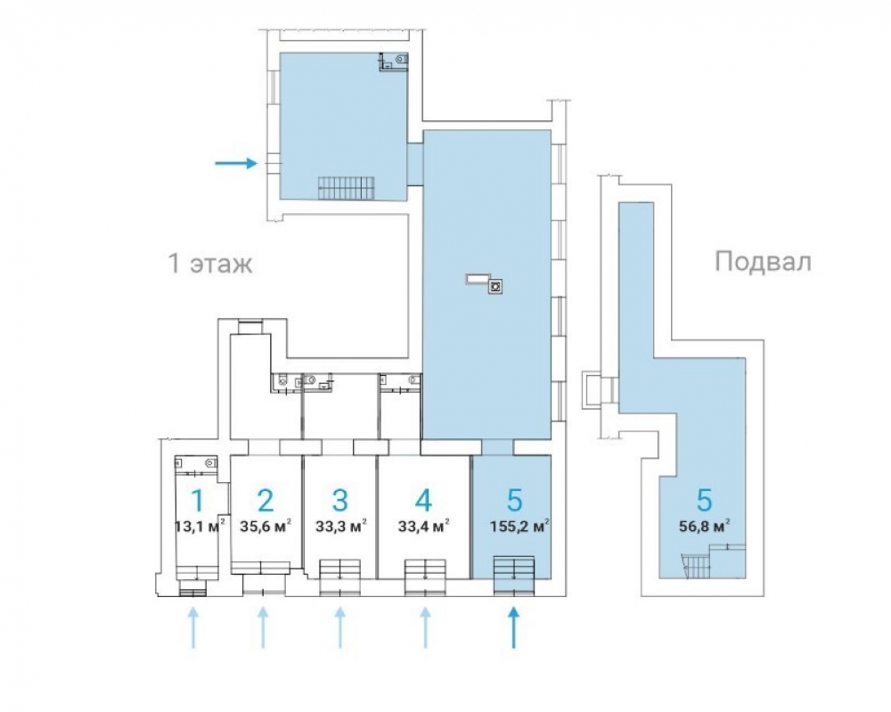 Этаж: -1 - 56.8 м2